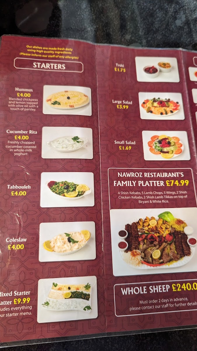 Nawroz Restaurant Menu